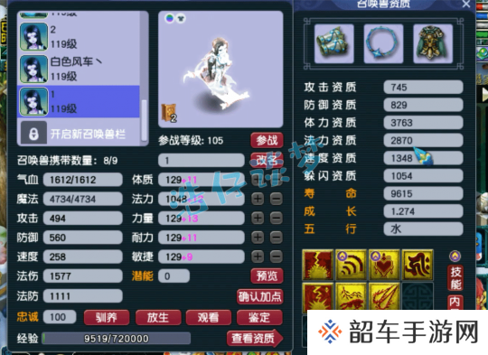 109级魔王寨没打临时符的面板属性,打符之后法伤能达到1800左右,属性还是非常不错的!