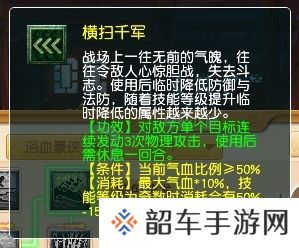 在续航方面,充足的气血是大唐打出高额单体输出的基础,伤势也成为大唐不可忽视的短板。如果能让大唐在每次横扫后,降低下次施放横扫的气血比例要求,那么将极大提高四刀大唐的持续作战能力。