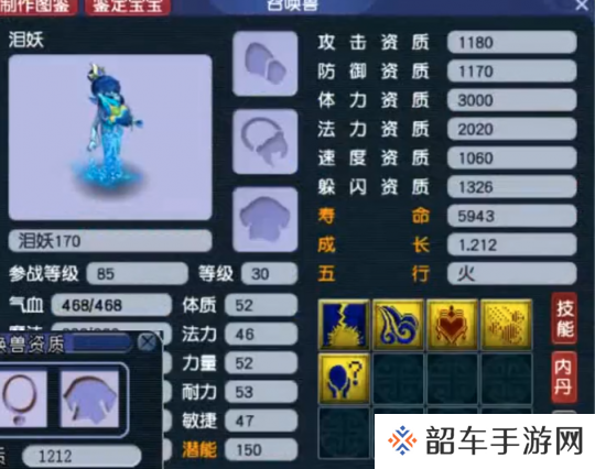果然,这泪妖绝了,资质也还能接受!玩家的召唤兽有了!