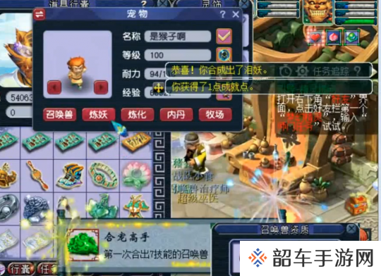 没想到呀,一下子炸出“合宠高手”的成就!合出来一只7技能的召唤兽,我们的胚子是5+2,竟然得到7技能的泪妖!!!这证明一个技能都没掉,我滴天,这运气没谁了,必然会有高魔心和须弥,血赚!