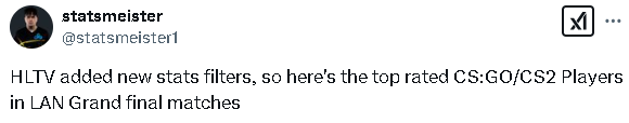 此前,HLTV新增了统计筛选功能:决赛、淘汰赛、非淘汰赛。