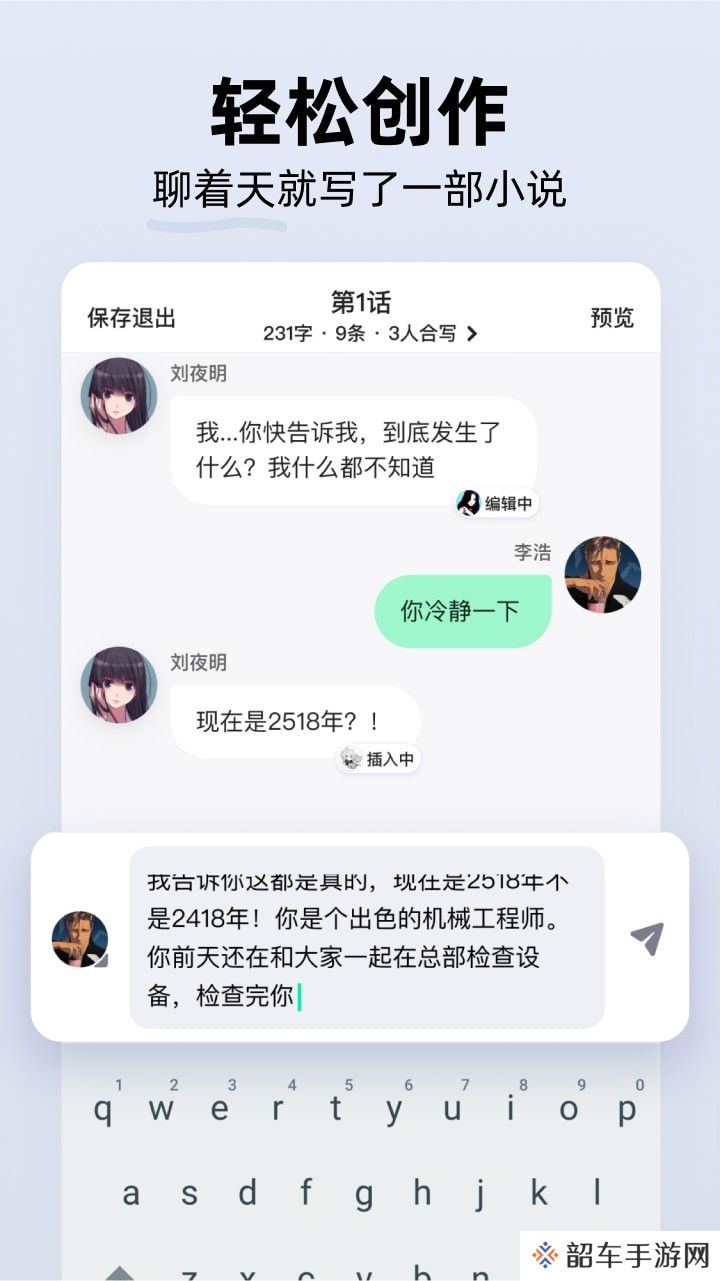 你可以邀请好友加入小说创作,支持多人合写再创作;