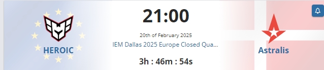北京时间今晚21:00,IEM 达拉斯站 2025最后一张门票将在Astralis和Heroic之间产生。