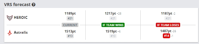 对于Astralis来说,这是一个重要的周末,尤其是考虑到他们在VRS中的排名。”(Astralis的排名比HEROIC高,输掉比赛将会扣更多的分。)