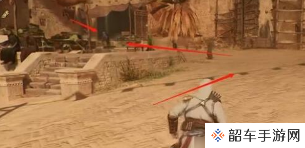 2、在三个NPC的旁边有一个向上的缆绳,上去之后会有士兵,成功暗杀即可获得碎片。